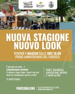 Il Chiosco del Parcobaleno si rinnova e invita tutta la cittadinanza a festeggiare il primo anniversario di apertura con tante novità e un’atmosfera di festa.